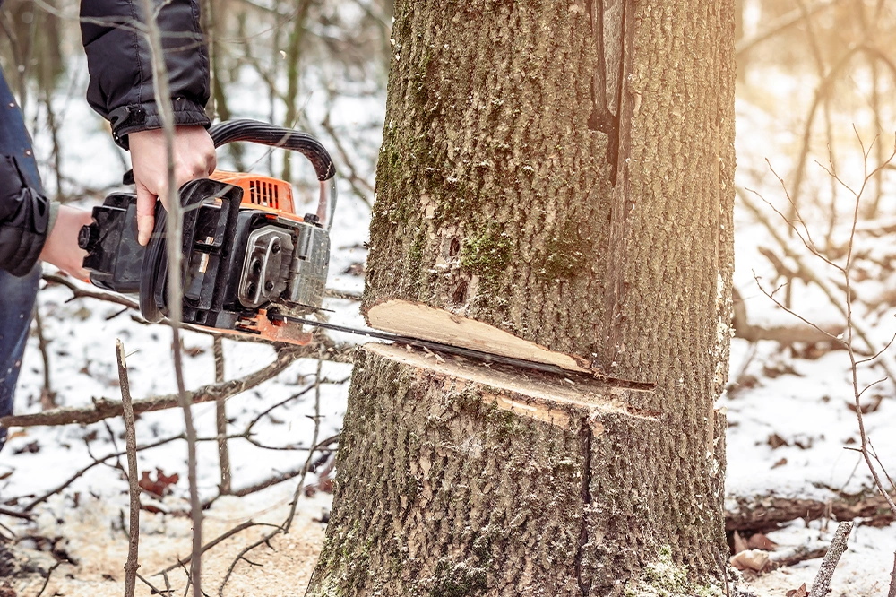 - stehende Baumfällung bei ausreichend Platz und freiem Fallbereich